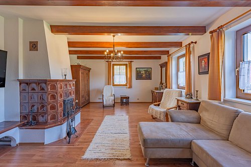 Samotný dům je promyšlenou dvoupodlažní stavbou s celkovou užitkovou plochou 273 m², přičemž čistě obytná část činí 223 m². Interiér je vybaven moderními spotřebiči, které usnadní každodenní chod domácnosti, a dům se nabízí částečně zařízený, což umožňuje okamžité nastěhování bez nutnosti dalších velkých investic. Atmosféru rodinné pohody a útulna dokreslují dvoje kachlová kamna, která jsou stylovým doplňkem moderního technologického zázemí. O tepelný komfort a energetickou efektivitu se totiž stará špičkové tepelné čerpadlo Mitsubishi typu vzduch–voda.