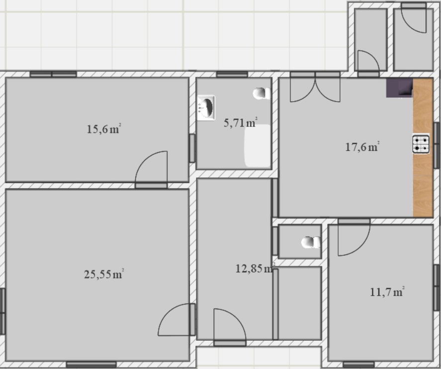 Dispozice domu je 4+kk, tvoří ji chodba, obývací pokoj, ložnice se vstupem do koupelny, jídelna s kuchyňským koutem a pracovna. V chodbě najdete také druhé wc, a připraven je prostor pro instalaci schodiště do druhého patra. To je neobydlené, ale vestavba dalších místností je možná.