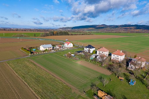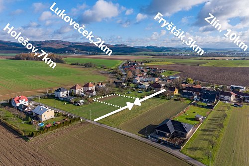 Pozemek se nachází na klidném, slunném místě. Ze severní strany je odstíněn řadou domků od silnice I.třídy, z jižní strany je v katastrální mapě zakreslena místní komunikace, která čeká na vybudování. Sítě nejsou dovedeny až k pozemku, ale vzhledem k husté okolní výstavbě jsou v dosahu. Díky jižní orientaci a rozložení pozemku můžete očekávat příjemný sluneční svit během celého dne.